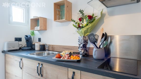 Nous avons été agréablement surpris de trouver une petite bouteille de bulles dans le frigo. Du thé, du café et de délicieux biscuits étaient également à disposition. L’hôte sait vraiment comment accueillir ses invités — c’était très chaleureux.
