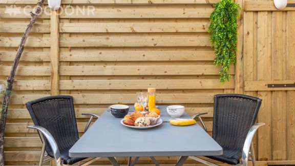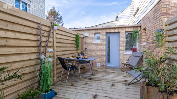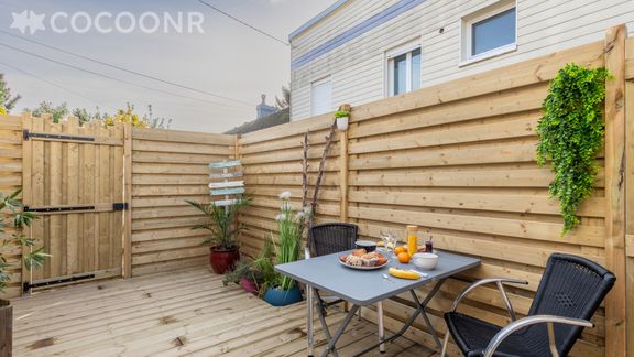 - Une terrasse de 15 m² en bois bien exposé avec mobilier de jardin pour profiter des beaux jours