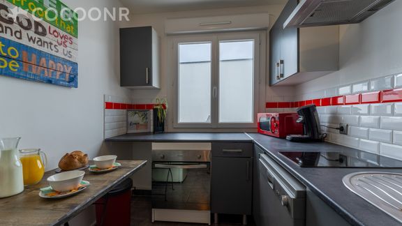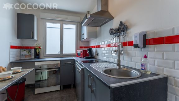 2 salles de bain dans l’appartement une machine à laver suffisante un lave vaisselle , un four assez grand et un micro-onde ainsi qu’une machine à café sur place.