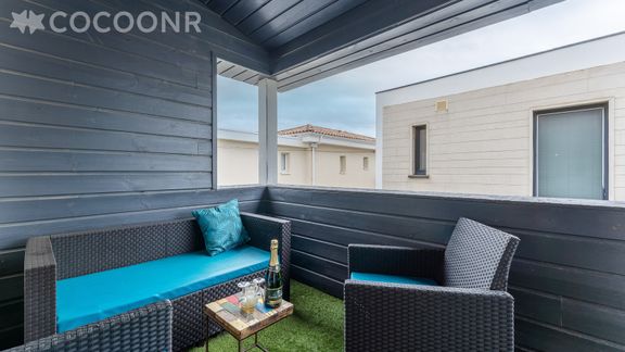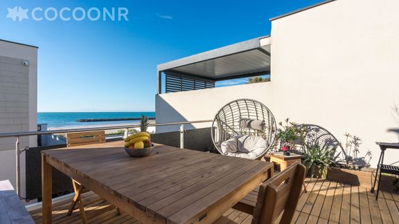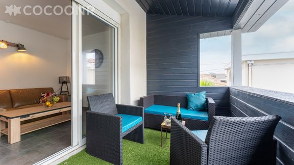 - Balcon aménagé avec salon de jardin, vue mer.