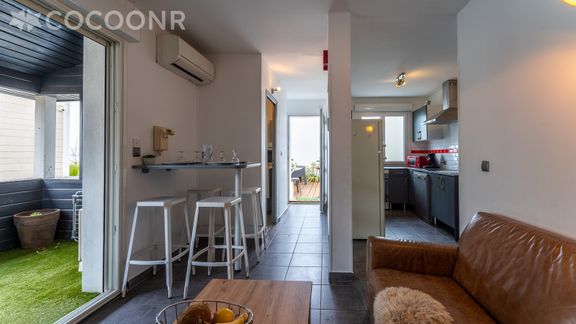 - Cuisine équipée, micro-ondes, four, cafetière Senseo, réfrigérateur, vaisselle, plaques de cuisson, lave-vaisselle), mange-debout pour 4 personnes.