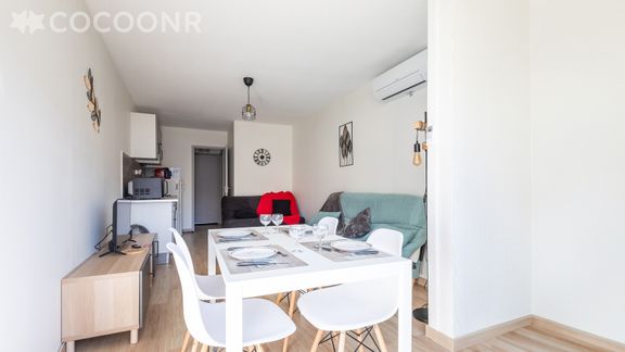 L'Agence Cocoonr/Book&Pay vous propose, à Agde, ce charmant studio climatisé à moins d’un kilomètre de la plage, d’une superficie de 25 m² et pouvant accueillir jusqu’à 4 voyageurs. Situé au rez-de-chaussée, il se compose d’une pièce à vivre de 22 m², d'une cuisine équipée, d'une salle de bain. Wifi inclus, nous n’attendons plus que vous !