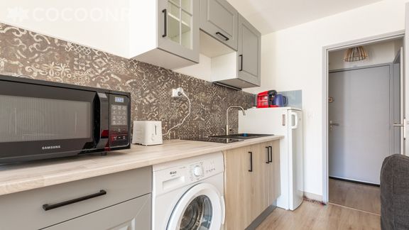 - Une cuisine équipée avec notamment : bouilloire électrique, four, four à micro-ondes, grille-pain, plaques de cuisson...