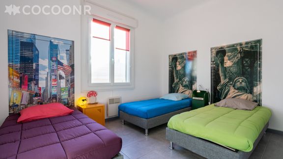 - Chambre 1 : 3 lits simples 90, idéale pour les enfants
