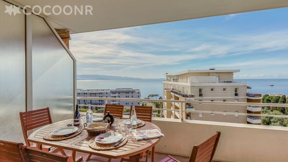Un bel appartement très bien situé avec une vraie vue sur la mer. Résidence calme et agréable terrasse pour prendre le petit déjeuner et les repas.