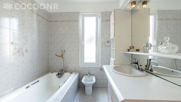 - Une salle de bain avec baignoire et WC