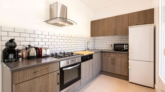 - Une cuisine équipée avec notamment : bouilloire électrique, four, four à micro-ondes, grille-pain, lave-vaisselle, plaques de cuisson...