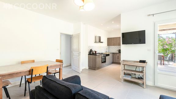 - La pièce principale (cuisine et salon) bénéficie de la climatisation.