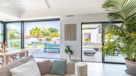 Cette villa est un lieu d’exception où se mêlent modernité, nature et convivialité, idéale comme villa de vacances à quelques minutes des plages.