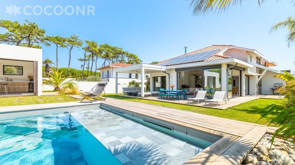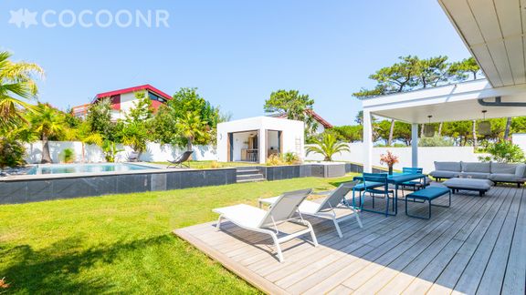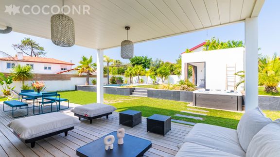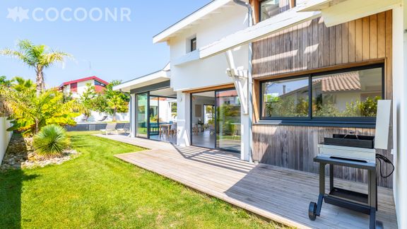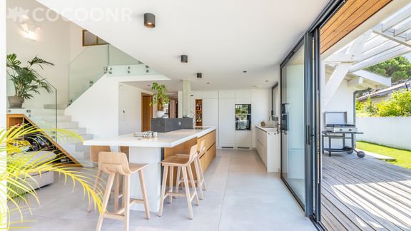 L'agence Cocoonr Pays Basque vous propose la Villa del Sol, située à Anglet et à seulement quelques minutes à pied de la plage. Cette superbe villa contemporaine de 215 m² combine design élégant, confort haut de gamme et espaces de vie pensés pour profiter pleinement de la douceur basque.