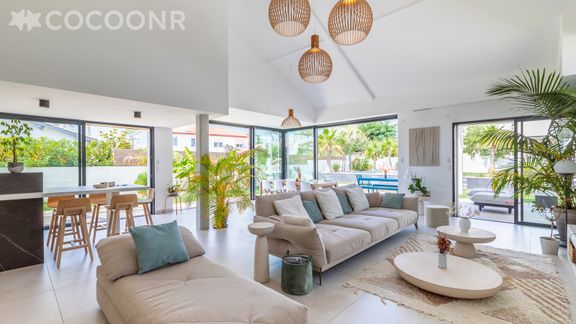 - Une pièce de vie lumineuse avec salon, salle à manger et cuisine ouverte, entièrement équipée