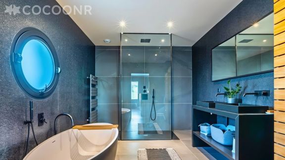 - 1 suite parentale avec un lit queen-size (160x200), une salle de bain (avec une douche, une baignoire et double vasques) ainsi qu'un grand dressing