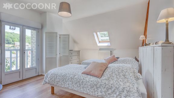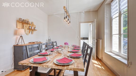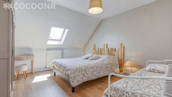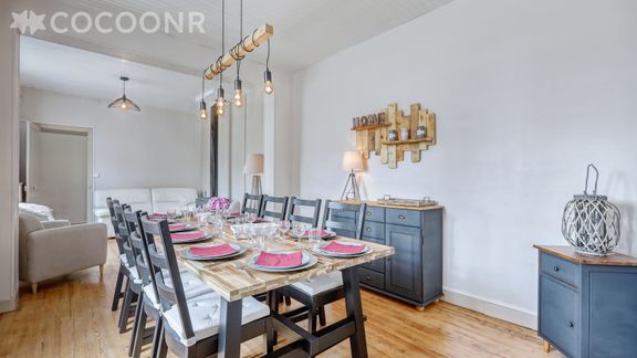 La maison d'une surface de 170 m² à la décoration soignée, vous offre tout le confort et les équipements indispensables pour un séjour parfait ! Elle est constituée d'un salon-salle à manger avec poêle à bois, d'une grande cuisine toute équipée, 5 chambres dont une au rez de chaussée. Grand jardin de 2 800 m². Le linge est fourni, les lits sont faits à l'arrivée et le bois est fourni pour le poêle à bois.