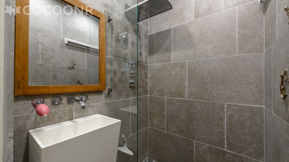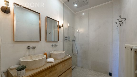 - Salle de bain 1 : douche à l’italienne, double vasques et WC.