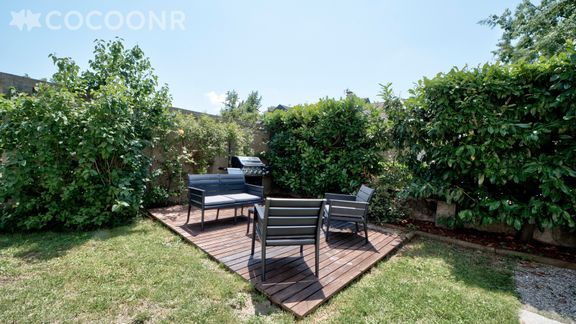 - Un jardin clos et privé de 116 m² avec une terrasse en bois de 15 m² aménagée d'un salon de jardin pour profiter des beaux jours