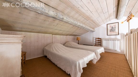 - Chambre 4 : un lit king-size (180 x 200), deux lits simples en mezzanine et une salle d'eau attenante avec douche