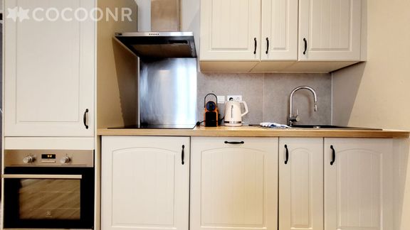 - Une cuisine équipée avec notamment : bouilloire électrique, four, grille-pain, lave-vaisselle, plaques de cuisson...