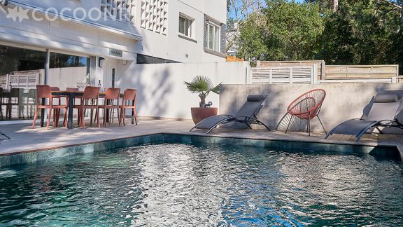 C'est dans le quartier des Abatilles à Arcachon, très calme et préservé, que vous pourrez poser vos valises pour un séjour de rêve en famille ou entre amis à la Villa Comète. Située en plein cœur de la pinède avec l'agrément de l'espace, elle dispose d'une grande terrasse ensoleillée donnant sur la piscine chauffée qui sera ouverte du 1er Mai au 30 Septembre.
