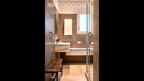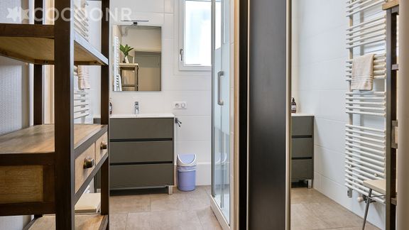 -Une salle d'eau avec douche,meuble vasque , lave linge et sèche linge