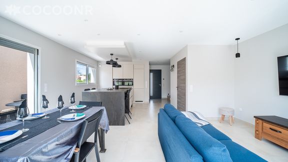 - Une pièce de vie de 46 m² avec TV, canapé...
