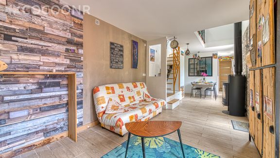 - Une pièce de vie de 25 m² avec canapé-lit double, TV, coin repas et cheminée (bois en supplément)