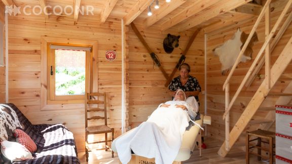 🙂 Le chalet est très bien décoré et le spa est top. Les adolescents ont adoré. Véronique propose des soins relaxants. Profitez-en