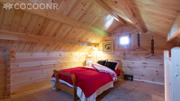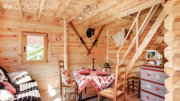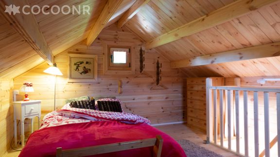 Si le jacuzzi est un point très positif, nous avons été déçus par une déco assez décalée et à la limite du kitch. Le mobilier est vieillissant : sommiers grincent, chaises déboitées et dangereuses, couettes trop petites, linge de lit [26€ pour 2] était bien usagé et pas très net, pour près de 140€ la nuit, on doit pouvoir attendre mieux! Pas un morceau de sucre, pas une dosette de café d'avance mais, une bouteille de cidre dans le frigo. L'accès à la chambre, via un escalier échelle n'est pas évident, attention à la tête! Le chalet se trouve en bordure immédiate d'une route très passante et bruyante, prévoir les boules Quiès!! En conclusion, nous repartirons bien peu conquis par ce logement, par chance la région regorge de jolis sites et de bonnes adresses sûrement bien plus agréables que celui-ci!