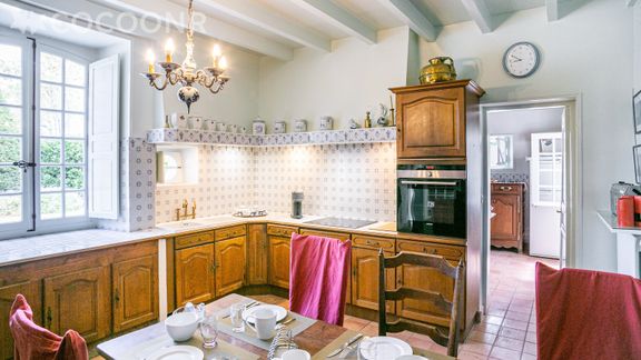 The place was staying in a piece of history. Beautiful, historic, peaceful and private. We loved our time here very much. We loved the outside covered area and used it a lot for coffee in the morning and wine in the evenings. It was nice to have the covered area as we had some rain. The house areas were wonderful for gathering, eating and visiting before the day began and at the end of each day. There is a lot of space and easily accessible for even those with limited mobility. The house/manor is just a wonderful historical experience. The gardens and nearby cows added even more delight! Location is great for getting to all the sites and amenities like a grocery store but still secluded. There are only two toilets, the downstairs was not working and that made for a little difficulty but this party of 6 managed fine. We did reach out and the Agence was responsive but a plumber was not available. Everything else worked fine. It would be great to have some history of the house to read.
