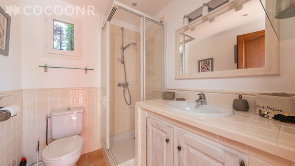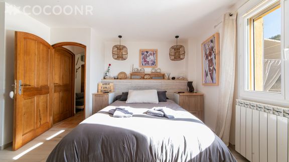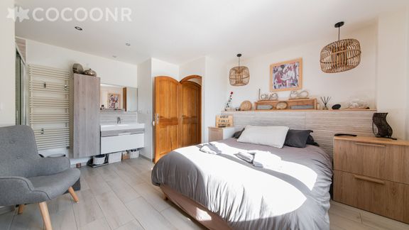 - Chambre 1 : suite parentale avec lit queen-size (160×200) et salle d'eau avec douche