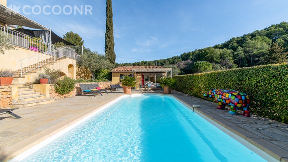 L'Agence Cocoonr/Book&Pay vous propose, à Aups, cette charmante maison climatisée avec vue montagne, piscine privée, d’une superficie de 175 m² et pouvant accueillir jusqu’à 8 voyageurs. Elle est composée d’une pièce à vivre de 40 m², d'une cuisine équipée, de trois chambres, de trois salles de bain, d'un studio indépendant et vous pourrez profiter d’un jardin d’environ 2 500 m².