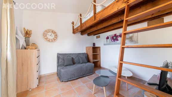- Une mezzanine avec un lit d'appoint (accès par échelle meunière)