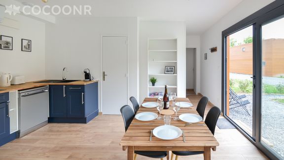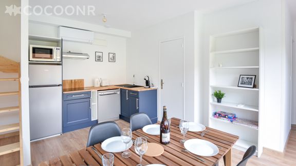 - Une cuisine équipée avec notamment : four, four à micro-ondes, bouilloire, grille-pain, lave-vaisselle, plaques de cuisson...