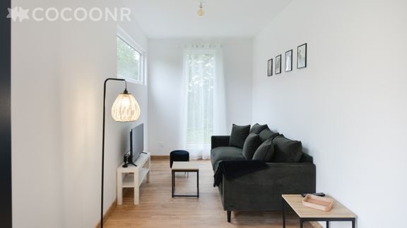 - Une pièce de vie de 20 m² avec TV, canapé...