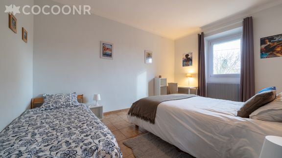 - Chambre 2 : avec un lit double (140×190) et un lit simple