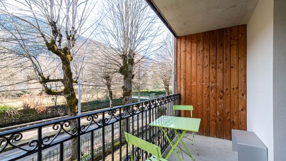- Un balcon d'environ 7 m², exposé Est, sans vis-à-vis et aménagé avec deux bains de soleil, une table et des chaises d’extérieur pour profiter d'un bon repas face à la rivière La Pique !