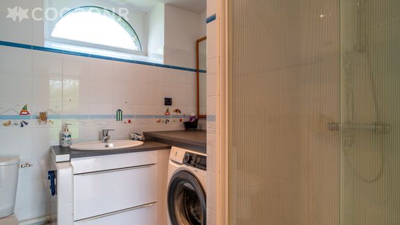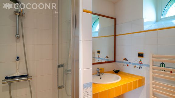 - Salle d'eau 1 : avec douche, lavabo, WC, lave-linge et rangement