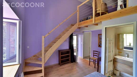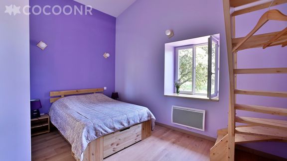- Chambre Violette : un lit double, deux lits simples (190x90) en mezzanine, une salle d'eau (douche à l'italienne) et un WC. Elle est accessible par la terrasse couverte.