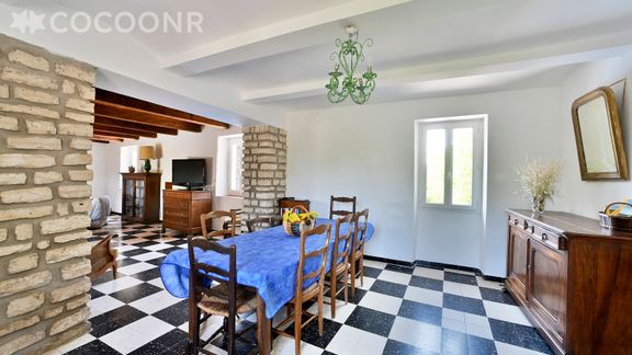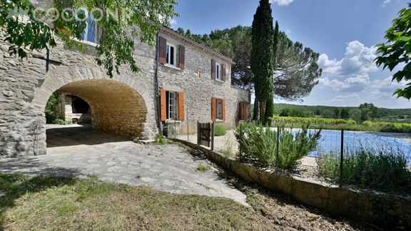 Nous vous proposons à la location, à Barjac, ce joli Mas avec piscine, entre le Gard et l’Ardèche, d’une superficie de 150 m² pouvant accueillir des familles jusqu’à 10 personnes. Elle est composée d’une jolie pièce à vivre de 60 m², d'une cuisine, indépendante, équipée, donnant sur la terrasse couverte, de 3 belles chambres, de 2 salles d'eau (avec douche) et d’une salle de jeu.