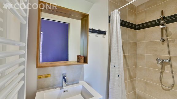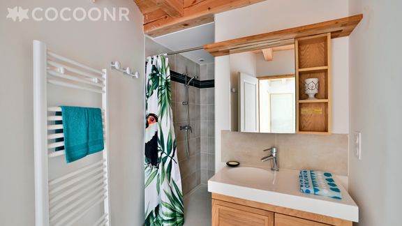 - Une salle d'eau avec douche à l’italienne et machine à laver