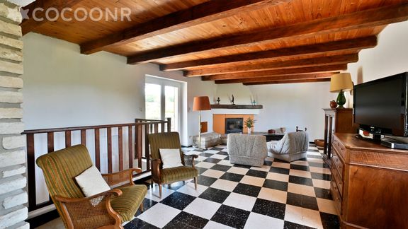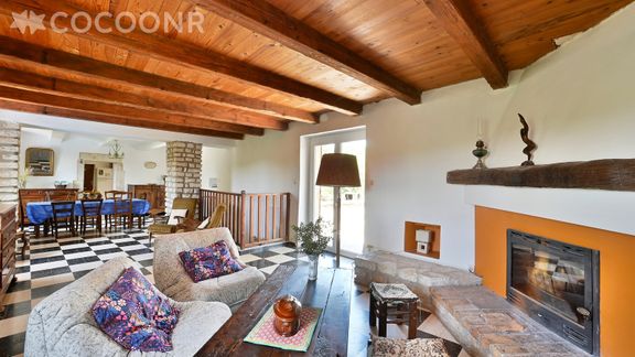- Une pièce de vie de 60 m² avec salle à manger, salon et coin TV (un insert pour l’hiver) donnant sur une grande terrasse parfaitement exposée et une très belle vue sur la plaine de la Ribaute.