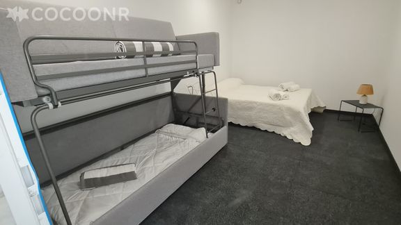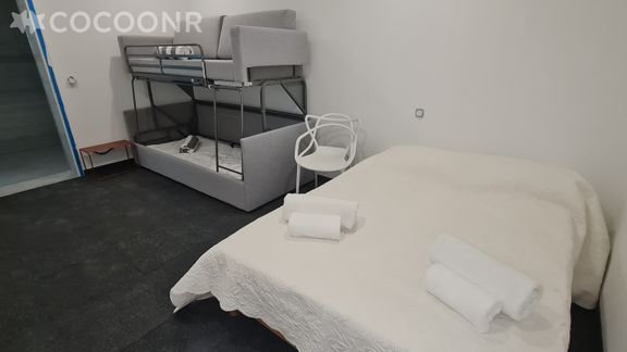 - Un dortoir avec quatre couchages, dont un lit double (140x190) et un canapé-lit superposé (2 couchages simples)