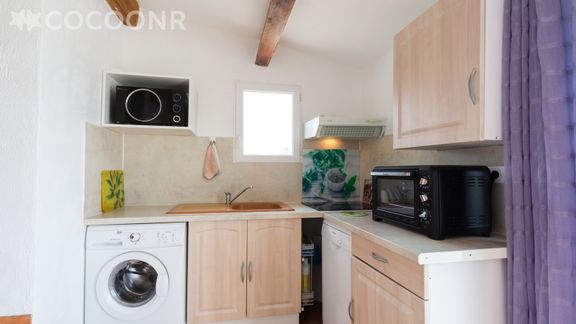 - Une cuisine équipée avec notamment : bouilloire électrique, four, four à micro-ondes, grille-pain, lave-vaisselle, plaques de cuisson...