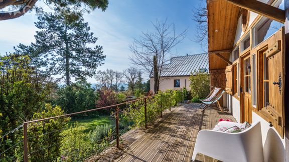- Une terrasse en bois d'environ 10 m² sur la longueur du chalet, exposée sud, avec mobilier pour profiter des beaux jours
