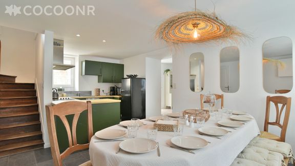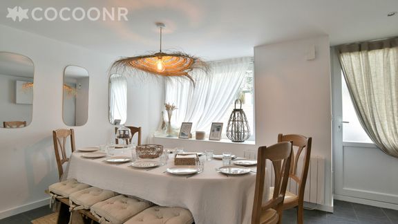 L'Agence Cocoonr/Book&Pay vous propose, à Beaussais-sur-Mer, cette charmante maison d’une superficie de 140 m² et pouvant accueillir jusqu’à 11 voyageurs, à 3.8 kms des plages (7min en voiture et 10min en vélo). Elle est composée d’un coin salon de 22 m², d'une salle à manger, d'une cuisine équipée, de cinq belles chambres et de deux salles de bain. Wifi inclus, nous n’attendons plus que vous !