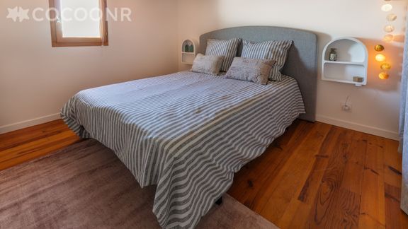 - Chambre 1 : avec un lit queen-size (160x200) et un canapé-lit simple avec accès à la terrasse