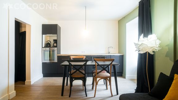 L'agence Cocoonr/Book&Pay vous propose à la location, à Bédée, cet appartement parfaitement équipé pour passer un séjour au calme, loisir ou professionnel, pour quelques jours ou semaines. Il peut accueillir jusqu'à 2 personnes confortablement. Situé au 1ᵉʳ étage, l'appartement de 35m² se compose d'une pièce à vivre, d'une cuisine équipée, d'une chambre et d'une salle de bain. Linge de maison fourni pour le lit (draps, serviettes de toilette, torchons).