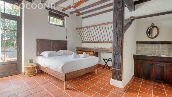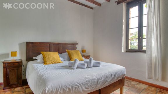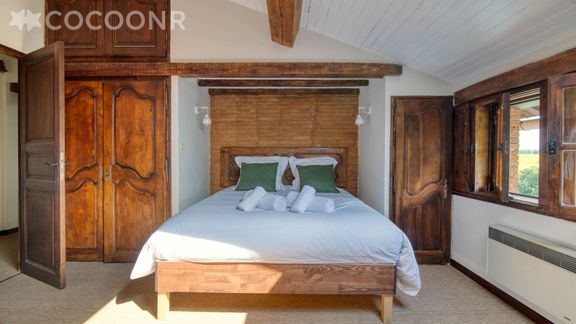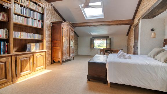 - Une suite parentale de 32 m² avec un lit queen-size (160×200) et un grand bureau pour travailler