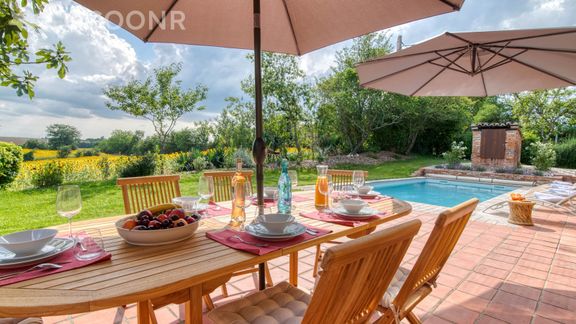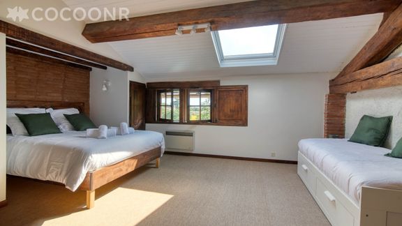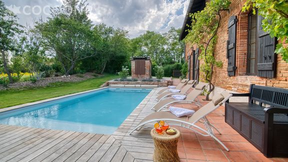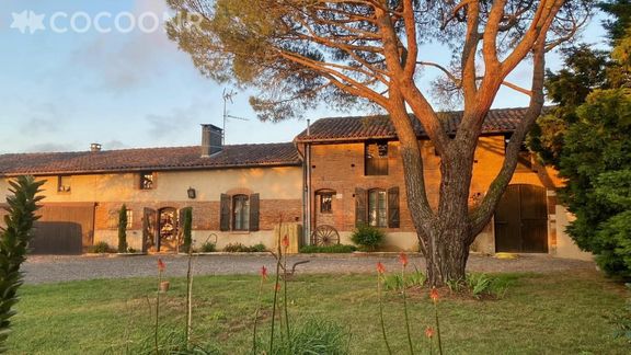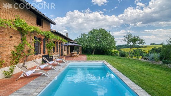 L'agence Cocoonr/Book&Pay vous propose à la location cette ancienne ferme rénovée en 2023, avec piscine ouverte et terrain multisport. Située sur les coteaux toulousains, au milieu des champs de tournesols, vous bénéficierez d’un calme enchanteur et d’une vue dégagée jusqu’aux Pyrénées.