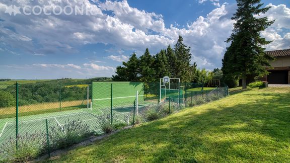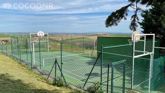 - Un terrain de tennis multisport et un portail avec deux balançoires viennent agrémenter les espaces extérieurs.