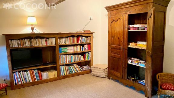 - Une salle de jeu avec bibliothèque, TV, lecteur DVD, jeux de société, Playmobil…
